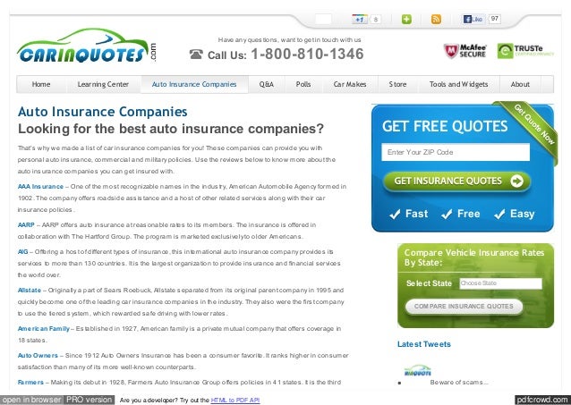 Www Carinquotes Com Auto Insurance Companies