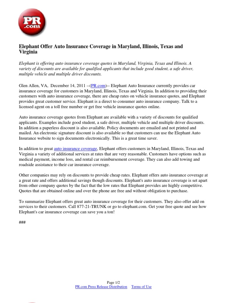 Elephant Offer Auto Insurance Coverage In Maryland Illinois